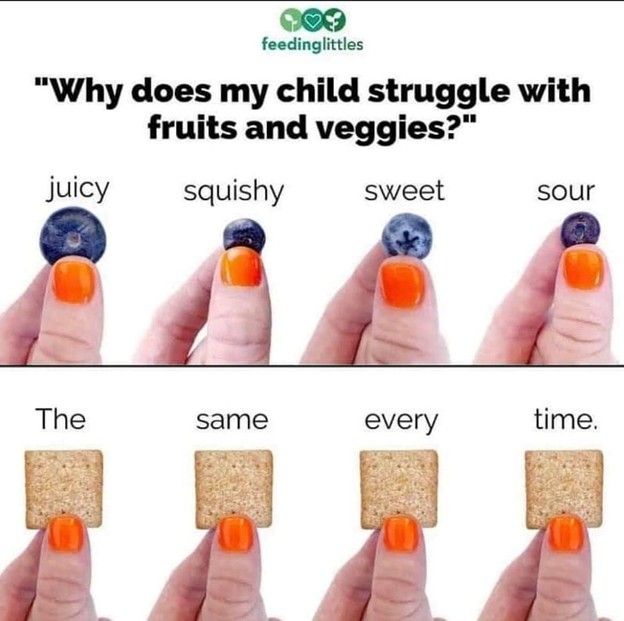 You might hear well-meaning opinions from others. “If you ate fruit, they would too.” You have my permission to roll your eyes. Your eating habits are not the problem. Sensory sensitivities are real and valid.